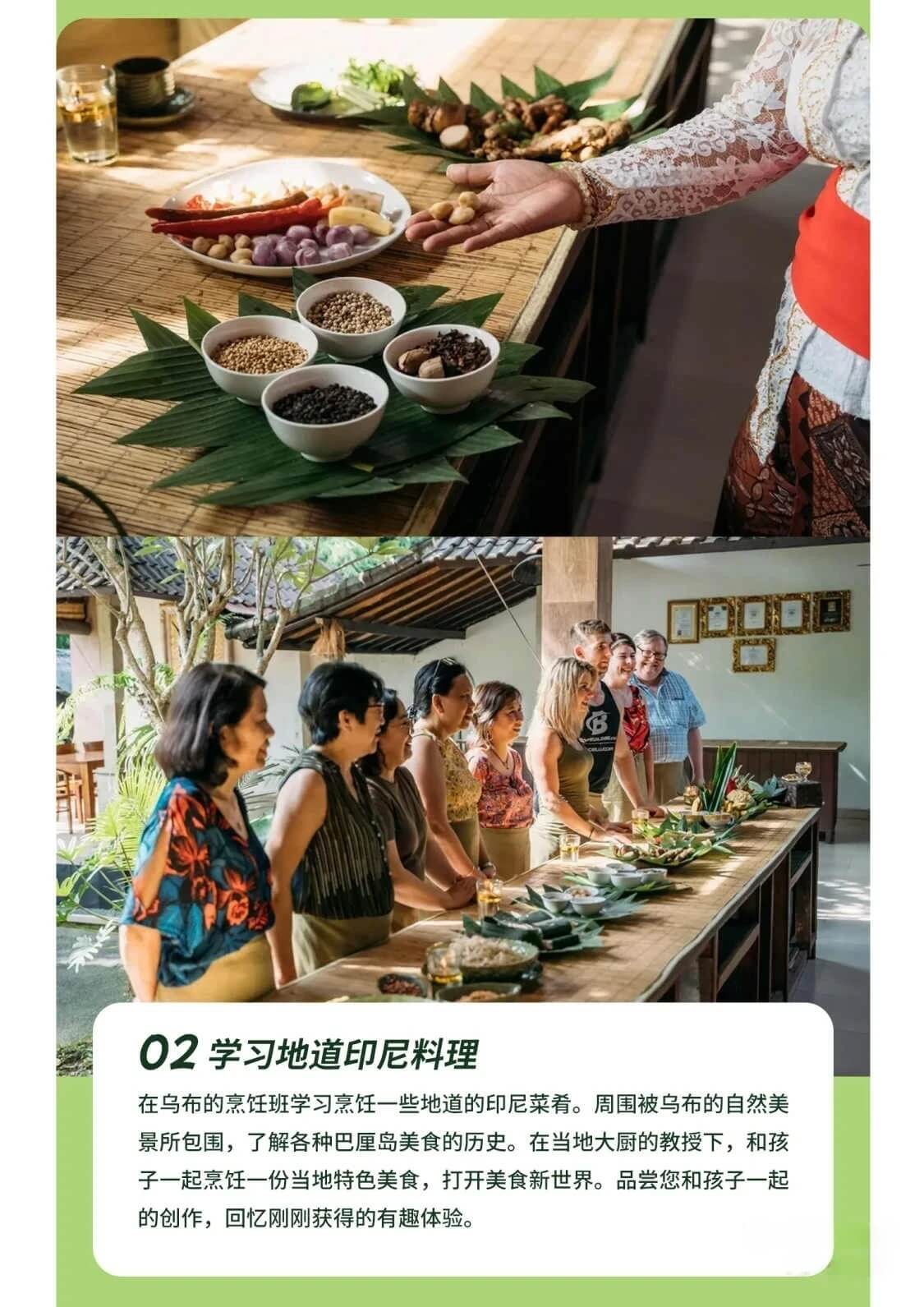 在巴厘岛传统房屋中参与晨间烹饪课,当地的居民将成为我们的导师,传授烹煮巴厘岛传统美食的功夫,同时欣赏当地的传统烹饪文化。