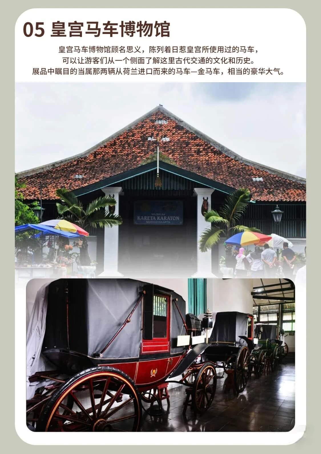 日惹,探访苏丹皇宫、水宫及马车博物馆,乘坐传统马车巡游马里奥波罗大街。