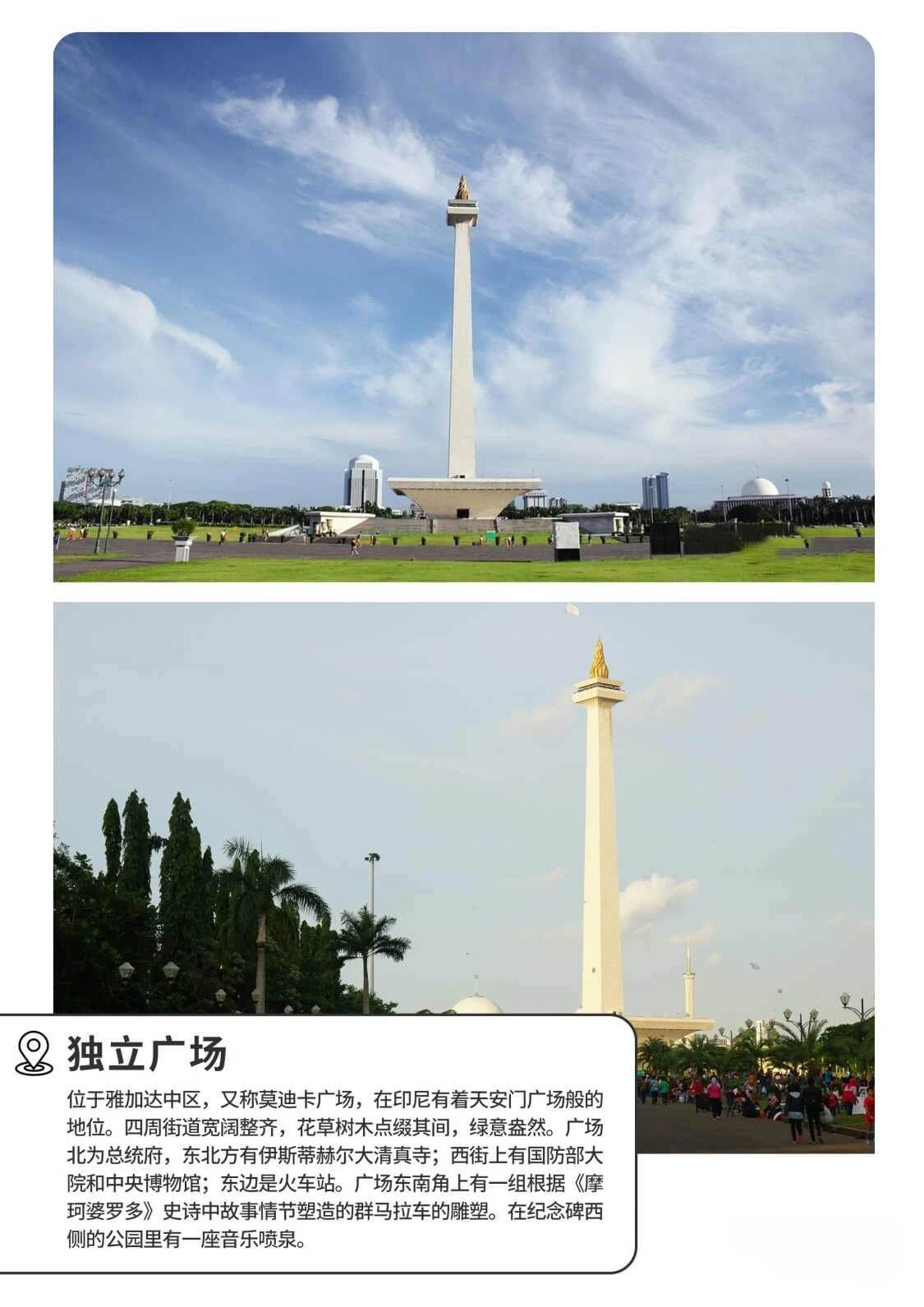 返回雅加达后游览缩影公园、独立广场、国家博物馆、伊斯蒂赫拉尔清真寺及老城区。